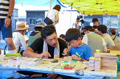 お客様をご招待する感謝祭には多くの方にご来場いただいております。大工さんが教える木工教室では針打ち体験などを通じ、子供たちに木の温かみとその豊かさ、そして楽しみながら仕事に興味を持ってもらうきっかけを作っています。